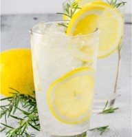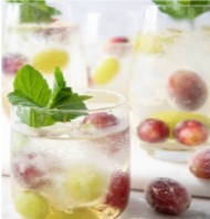 Sparkling water with lemon slices, torn mint and frozen grapes (trust me, they are the prettiest ice cubes you’ll ever use)