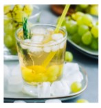 Sparkling lemon & ginger water with frozen grapes and torn mint – refreshing with a little zing