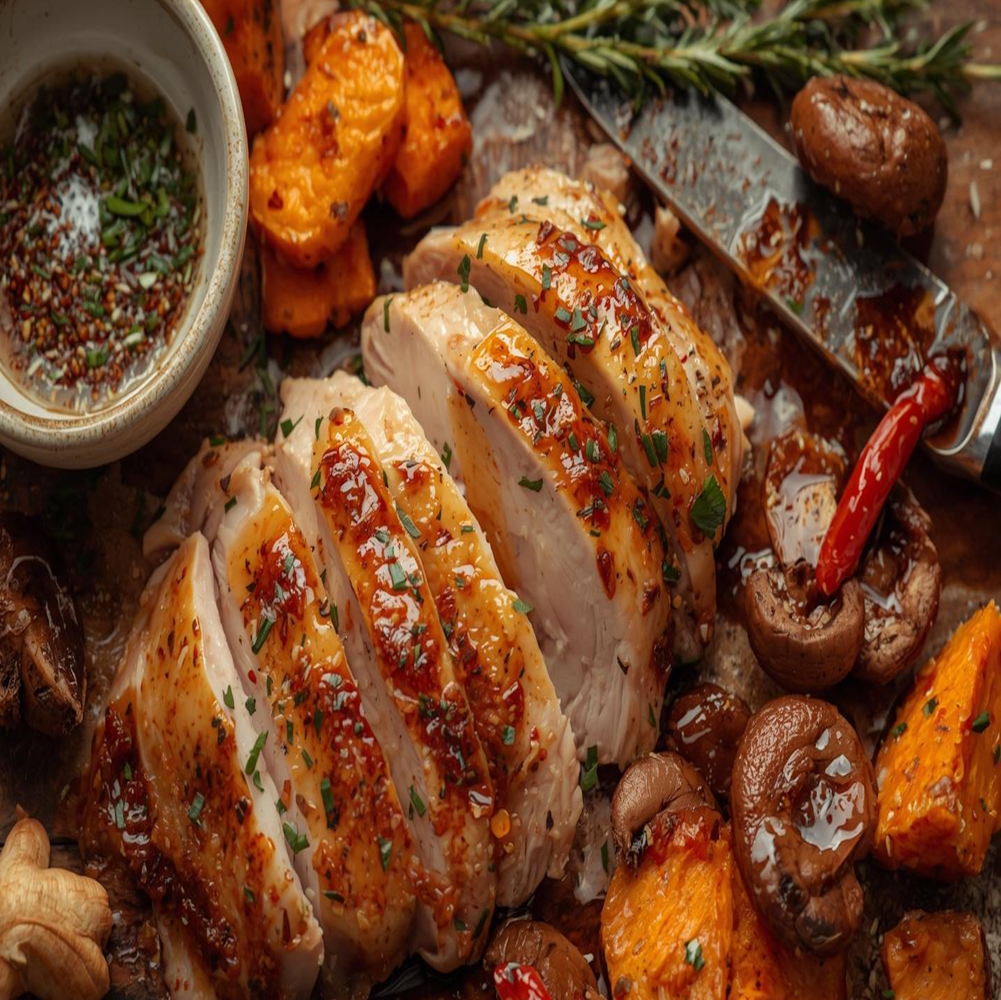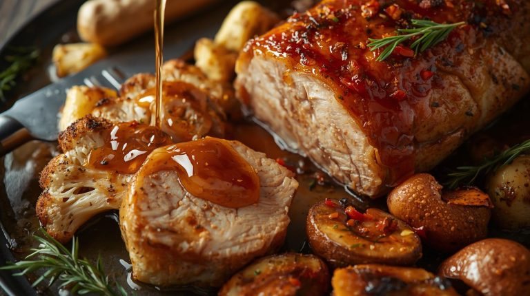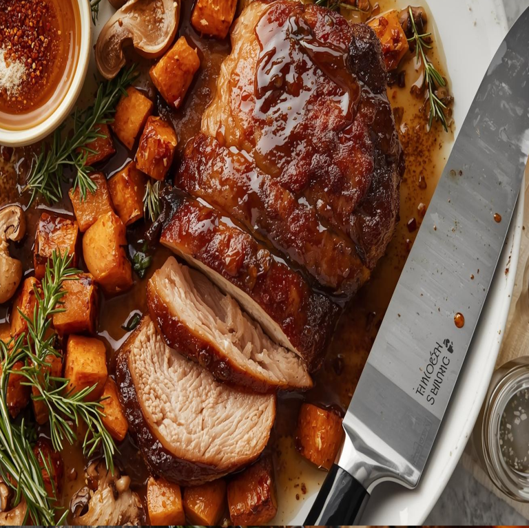 The Concept: This is a dish built for a celebration. It takes the familiar comfort of a roast and elevates it with a bold, sweet, and spicy twist that will surprise and delight. This is a meal that truly heroes the knife, as you cook a beautiful centerpiece and then carve it into thick, glorious slices, ready to be shared. The best part is that it works just as beautifully as a plant-based or meat-based meal, using the same ingredients.