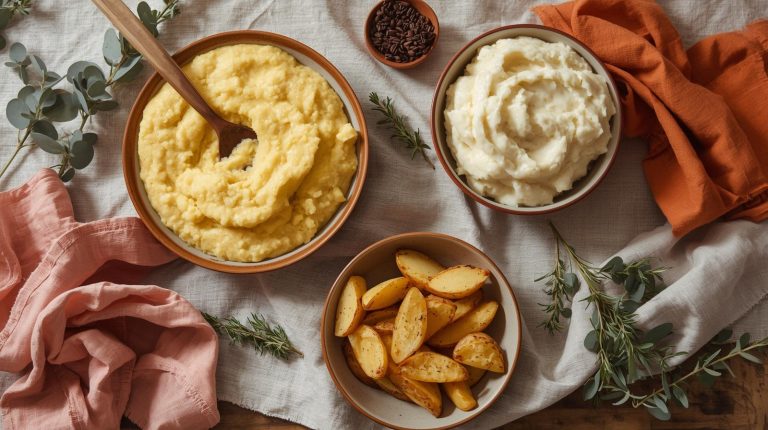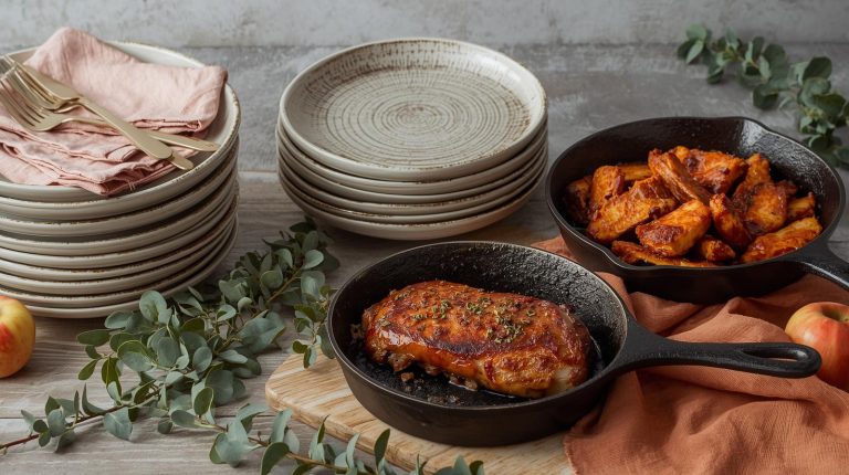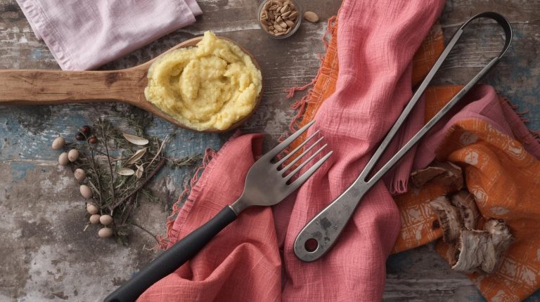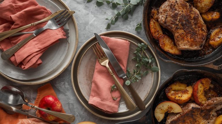 The utensils should be just as honest and straight forward as the meal itself. I love using sturdy, rustic pieces that are both functional and beautiful. A large, worn wooden serving spoon is perfect for the creamy polenta or mashed potatoes. For the pork chops or chicken strips, a pair of simple serving tongs or a fork does the trick. These tools should look like they belong in a well loved kitchen, adding to the cozy, authentic feel of the feast.