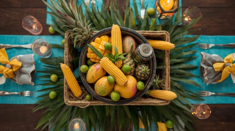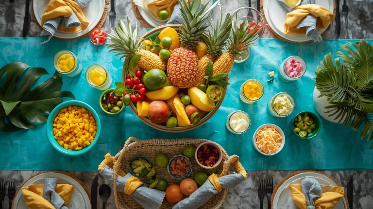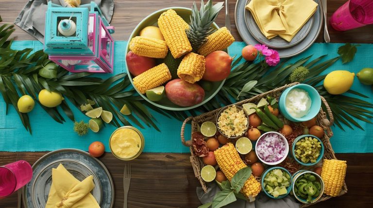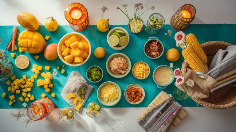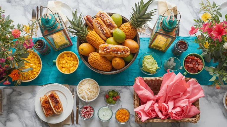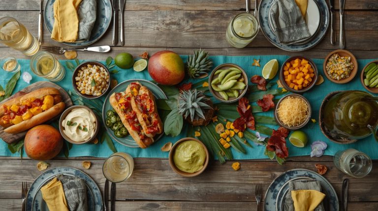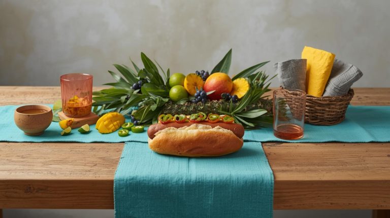 Your hotdogs are the main event, but the toppings are the stars of the show. We’ll present them as an artful, interactive display. Use a collection of small, mismatched ceramic or wooden bowls and place them in a loose, asymmetrical arrangement down the center of the table. The vibrant Mango Chili Pineapple Lime Relish goes in a beautiful, hand painted bowl, while the creamy Avocado Chipotle Crema sits in a simple, deep green ceramic dish. The corn, grated cheese, jalapeños, red onion, and bacon can be placed in smaller, scattered bowls with different textures and materials, inviting guests to explore the flavors.