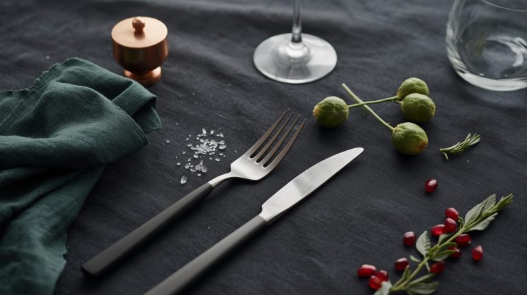 For the cutlery and other decor I go for simple, elegant cutlery with a matte finish or silverware both work. I bring in a touch of warmth with a beautiful copper salt shaker and a sleek, modern pepper grinder. The entire setup is about celebrating the richness of the food with beautiful, intentional details.